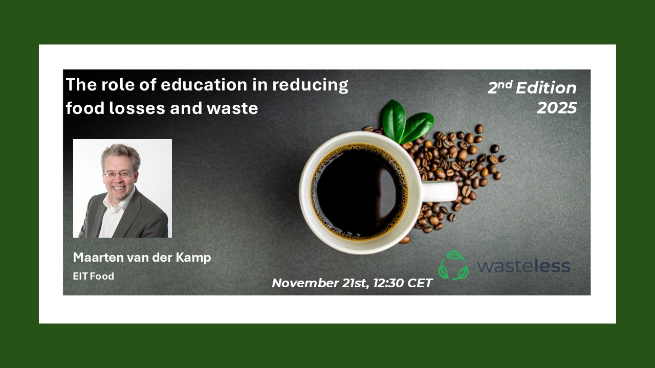 WASTELESS hosts a series of Monthly Café Talks, on the third Friday of the month at 11.00 CET, to engage with all stakeholders in the food value chain on topics related to Food Loss and Waste. These 30 minutes meetings are aimed at encouraging the exchange of views and best practices on FLW measuring, monitoring and valorisation strategies between all food value chain actors, from primary producers to consumers, policy makers, researchers and others.